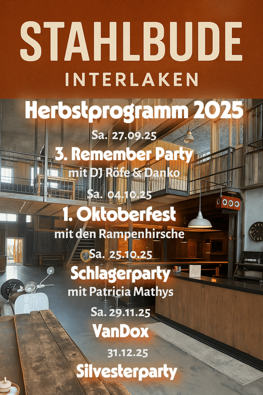 Wir wollen auch diverse Themenanlässe durchführen und spezielle Musikabende organisieren. Unser Ziel ist es wieder ein Konzertlokal in Interlaken anzubieten, das Leute von nah und fern anziehen soll, die einen unvergesslichen Abend verbringen wollen. Welche Band und an welchem Datum sie spielen werden, werden wir jeweils hier publizieren.